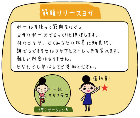 各種ヨガ、ピラティス、ジャイロキネシス、骨盤調整、親子ヨガ、キッズヨガ、マタニティヨガ、すくすくカード利用可能