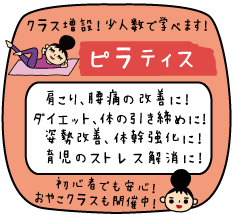 各種ヨガ、ピラティス、ジャイロキネシス、骨盤調整、親子ヨガ、キッズヨガ、マタニティヨガ、すくすくカード利用可能