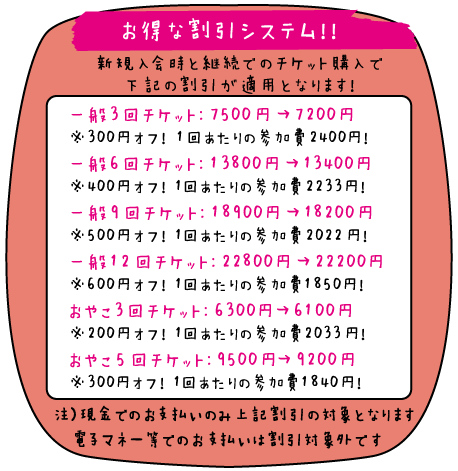 ・お子様連れでのご参加は「おやこクラス」をお選びください