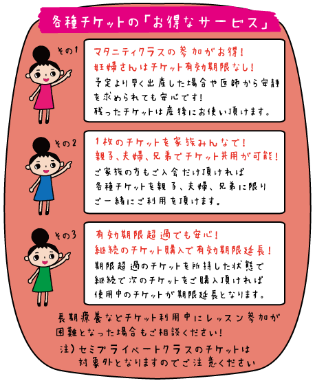 ・妊婦さんは「マタニティクラス」にのみご参加が可能です