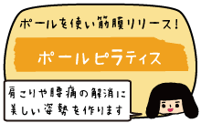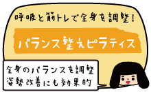 ・ピラティス→常に体を動かす、インナーマッスルを鍛える、ボールなど道具を使用