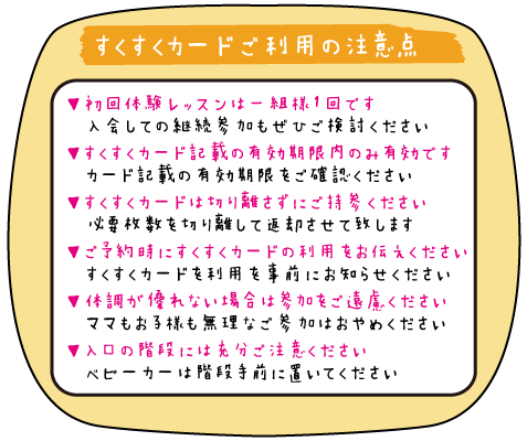 下記クラスの初回体験レッスンに「すくすくカード」がご利用可能です。